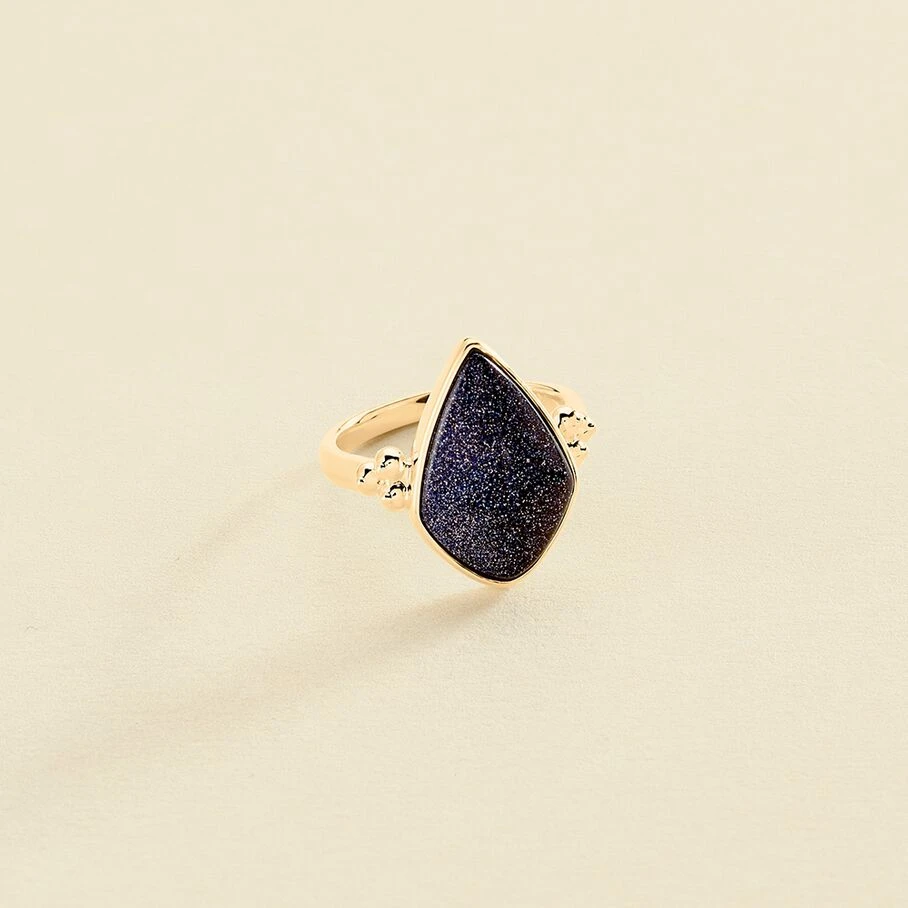 Bague, en laiton doré 750/1000, grand pierre en forme de goutte