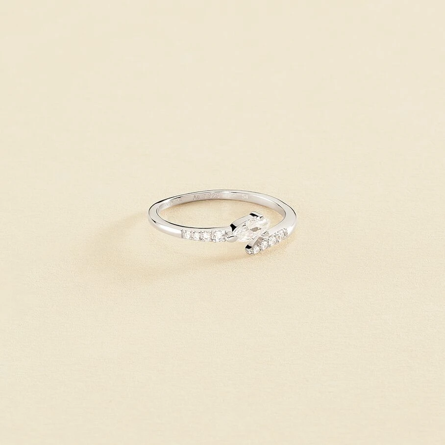 Bague ouverte en argent véritable en forme de serpent pavée d’oxydes de zirconium