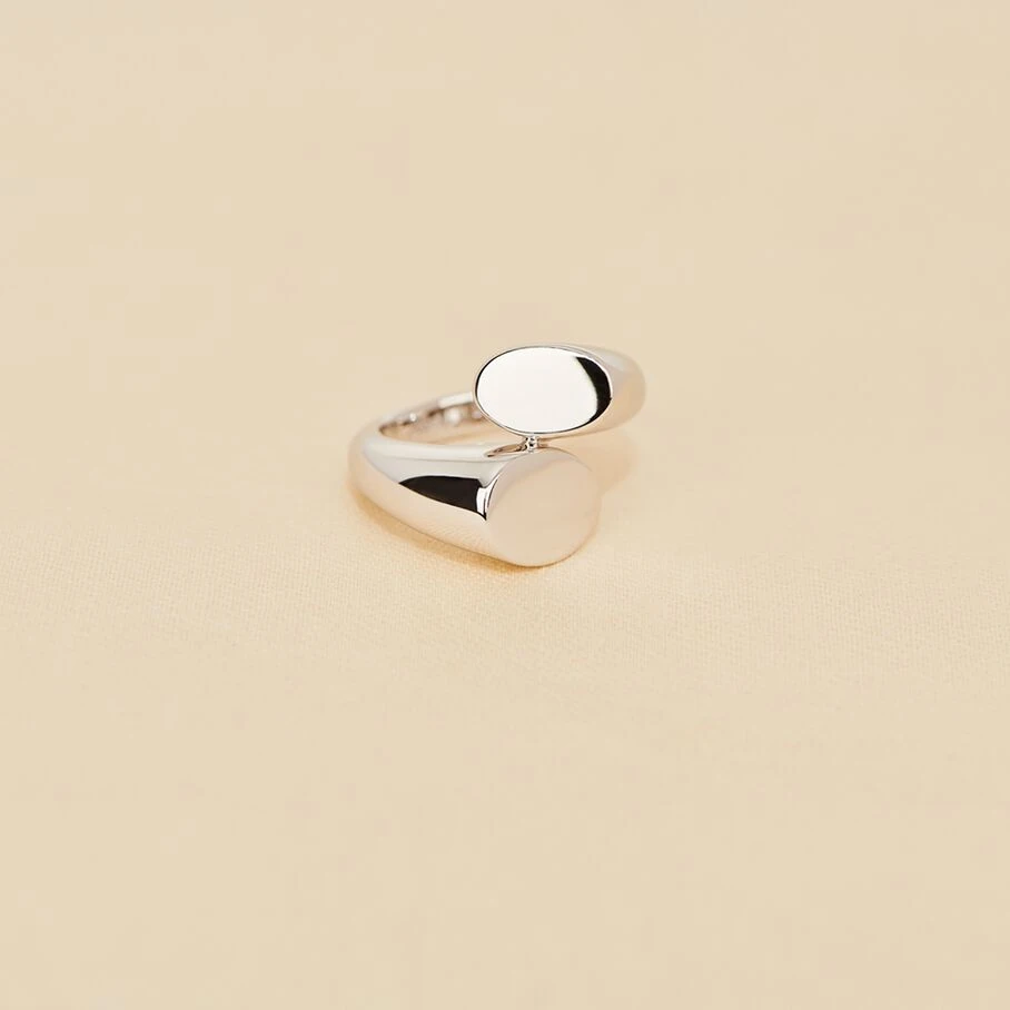 Bague toi& moi, en argent véritable, avec des extrémités planes. Un design qui donnera du volume à vos mains !