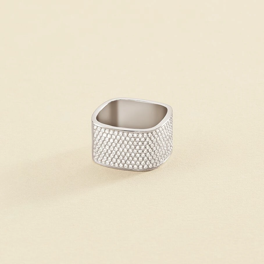 Bague tonneau carrée, en argent véritable sertie de dizaines d’oxydes de zirconium scintillants. Une belle bague qui viendra compléter à la perfection vos tenues de soirée !