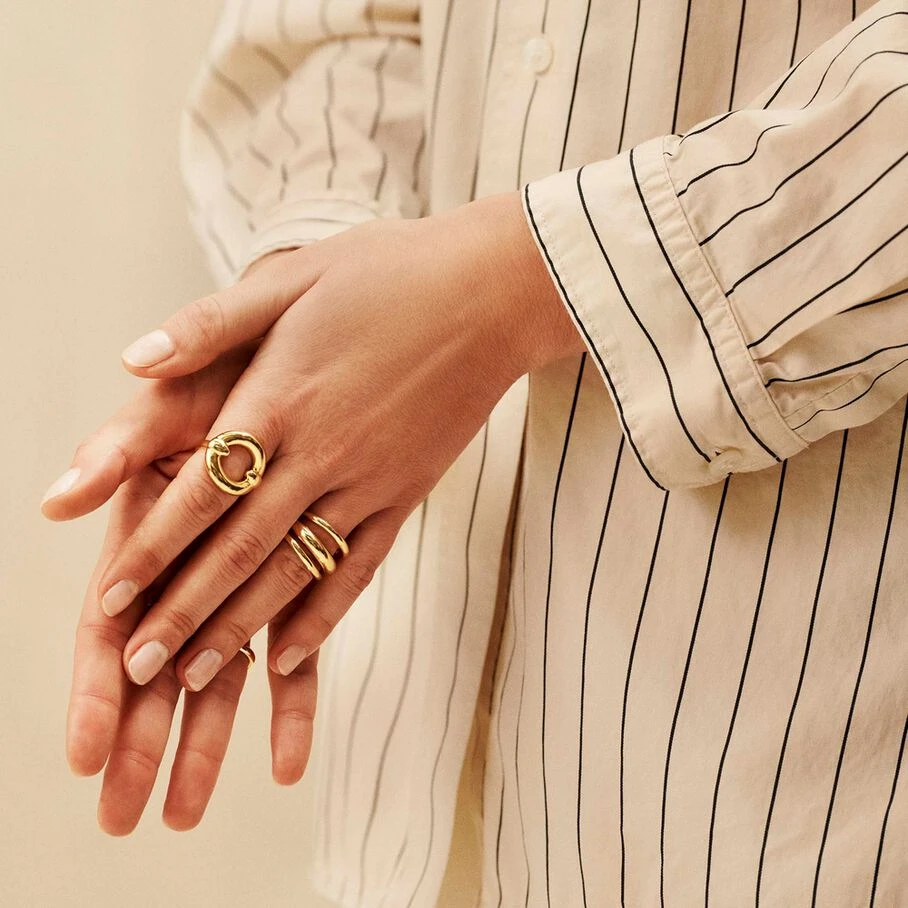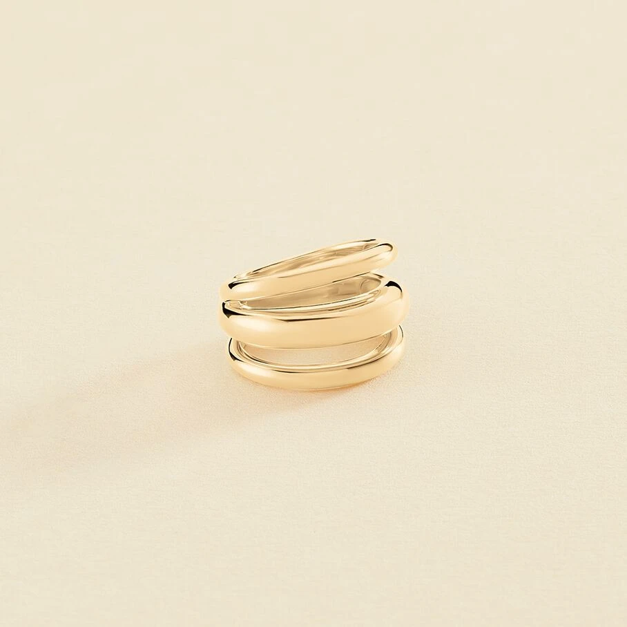 Bague, en argent véritable doré 750/1000, faite de 3 joncs bombés