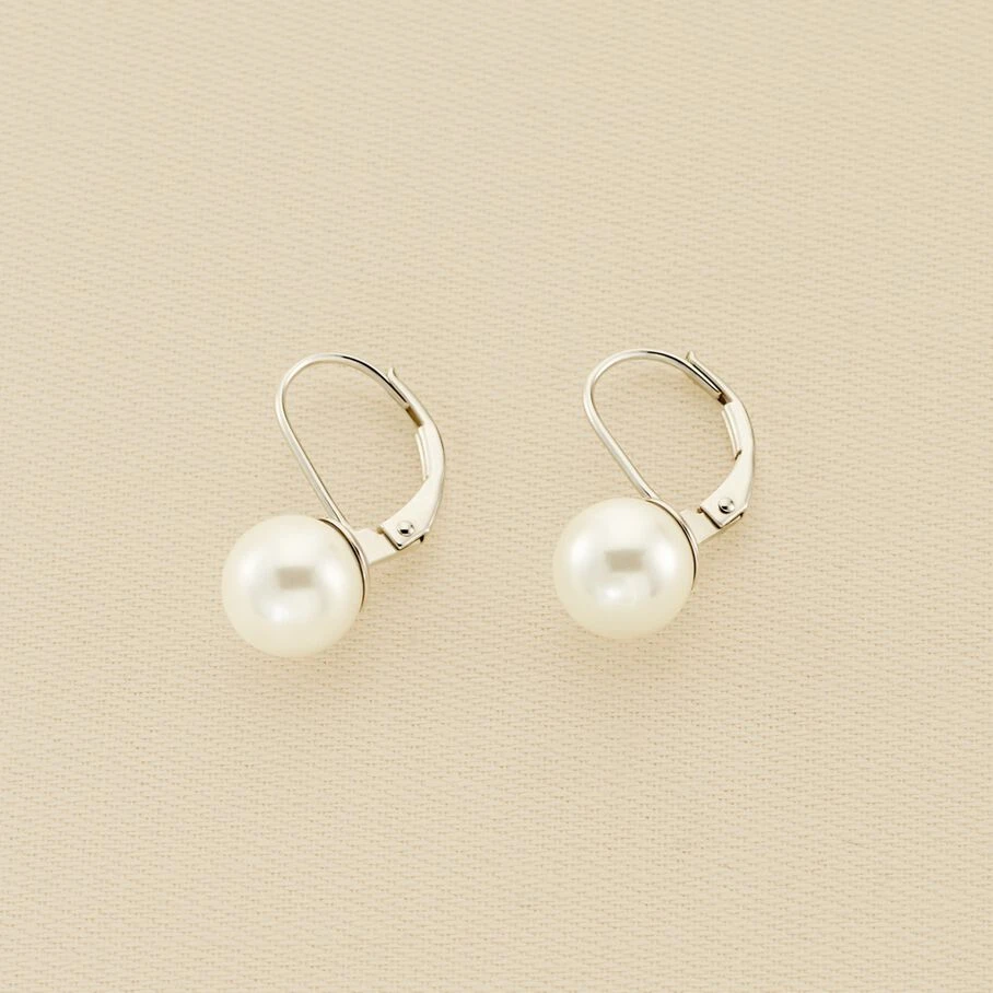 Boucles d’oreilles dormeuses en argent véritable ornées de perles de 8 mm de diamètre