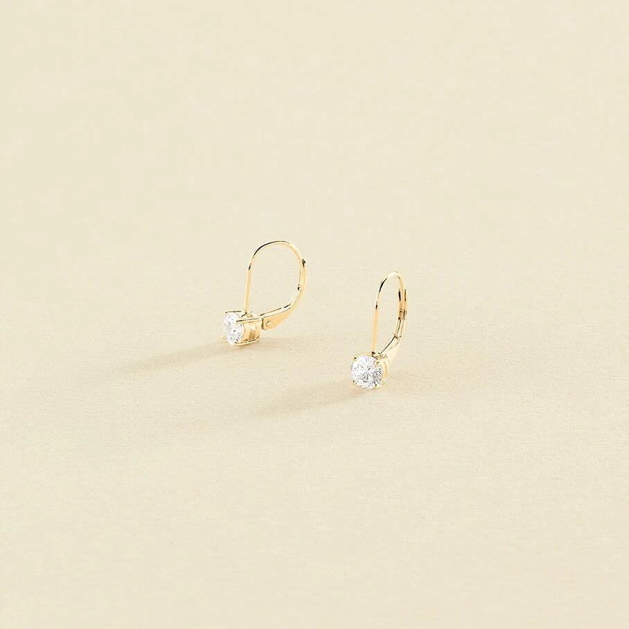 Boucles d’oreilles dormeuses, en argent véritable doré à l’or fin, avec un oxyde de zirconium griffé de 5mm de diamètre
