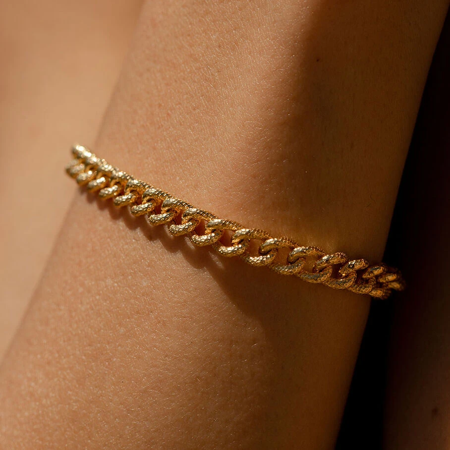 Bracelet gourmette en argent vériable doré 750/1000.