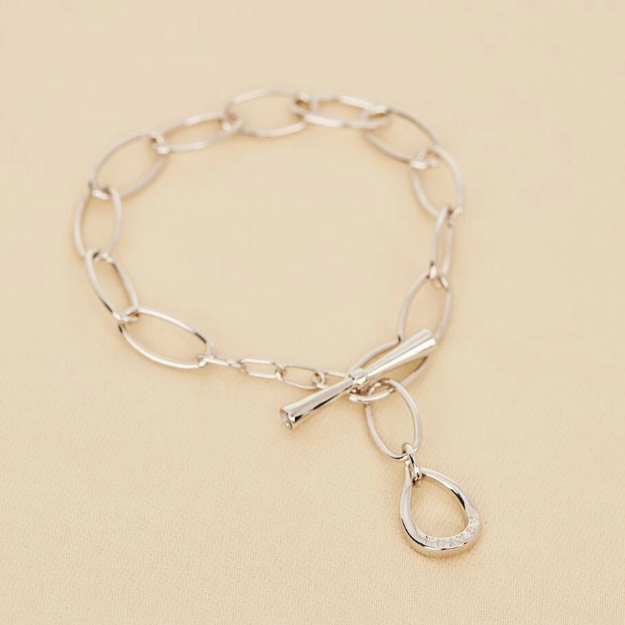 Bracelet souple, en laiton rhodié, composé de maillons ovales allongés