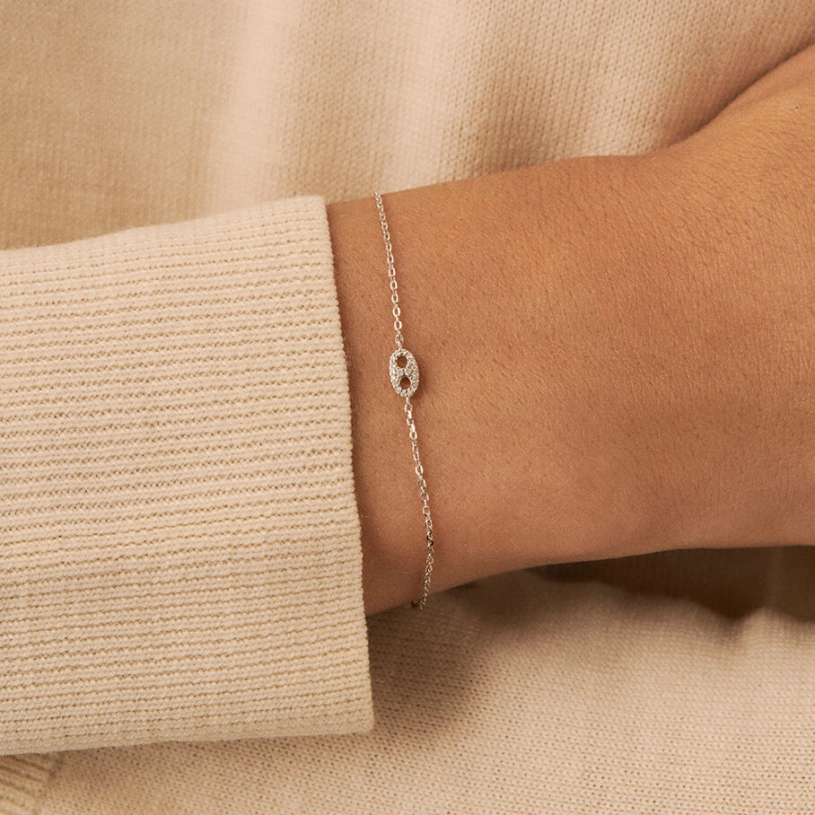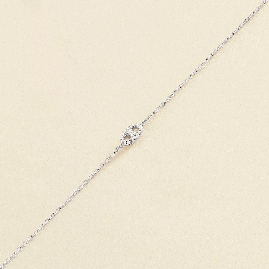 Bracelet, en argent véritable, avec un grain de café pavé monté sur une fine chaine maille forçat