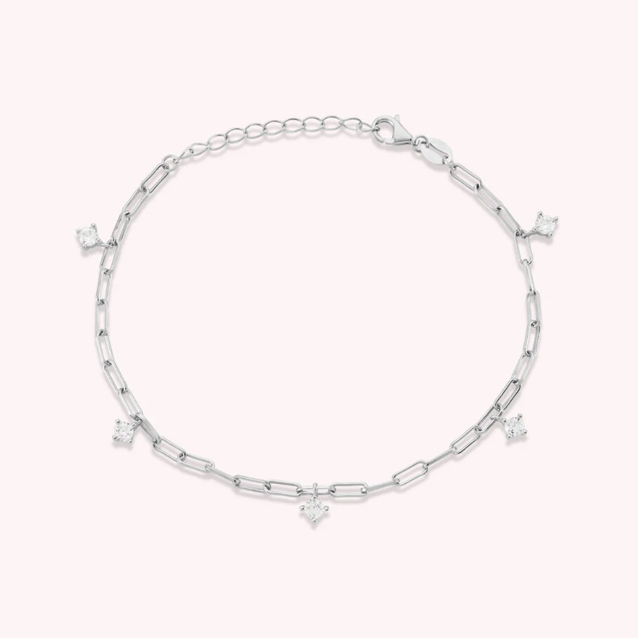 Bracelet, chaine rectangle et 5 oxydes de zirconium sertis griffes, en argent véritable