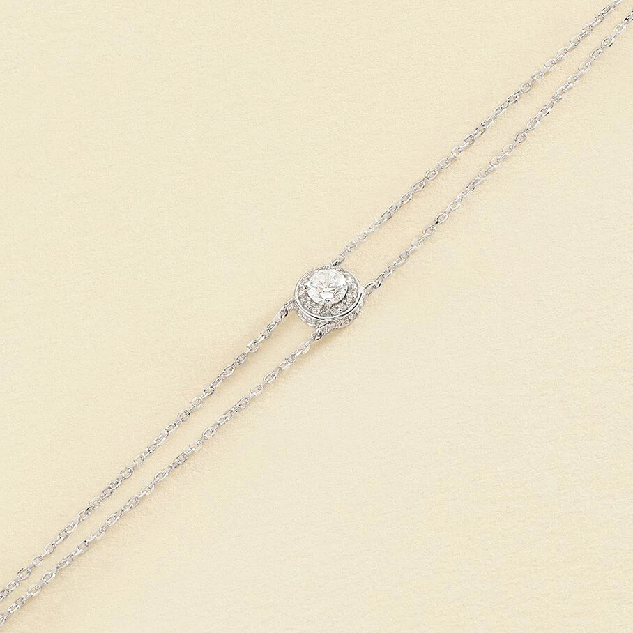 Bracelet chaine, en argent véritable, avec un mini oxyde rond autour duquel sont micro sertis des oxydes de zirconium