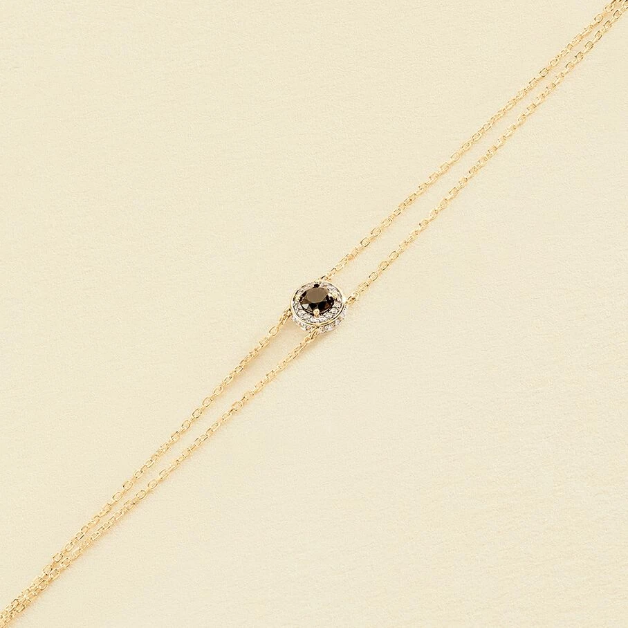 Bracelet chaine, en argent véritable doré 750/1000, avec un mini oxyde rond autour duquel sont micro sertis des oxydes de zirconium