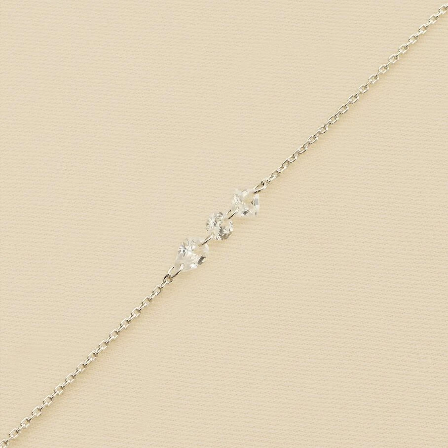 Bracelet fin, en argent véritable, avec une trilogie d’oxydes de zirconium percés en forme de poire, de rond et coussin