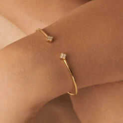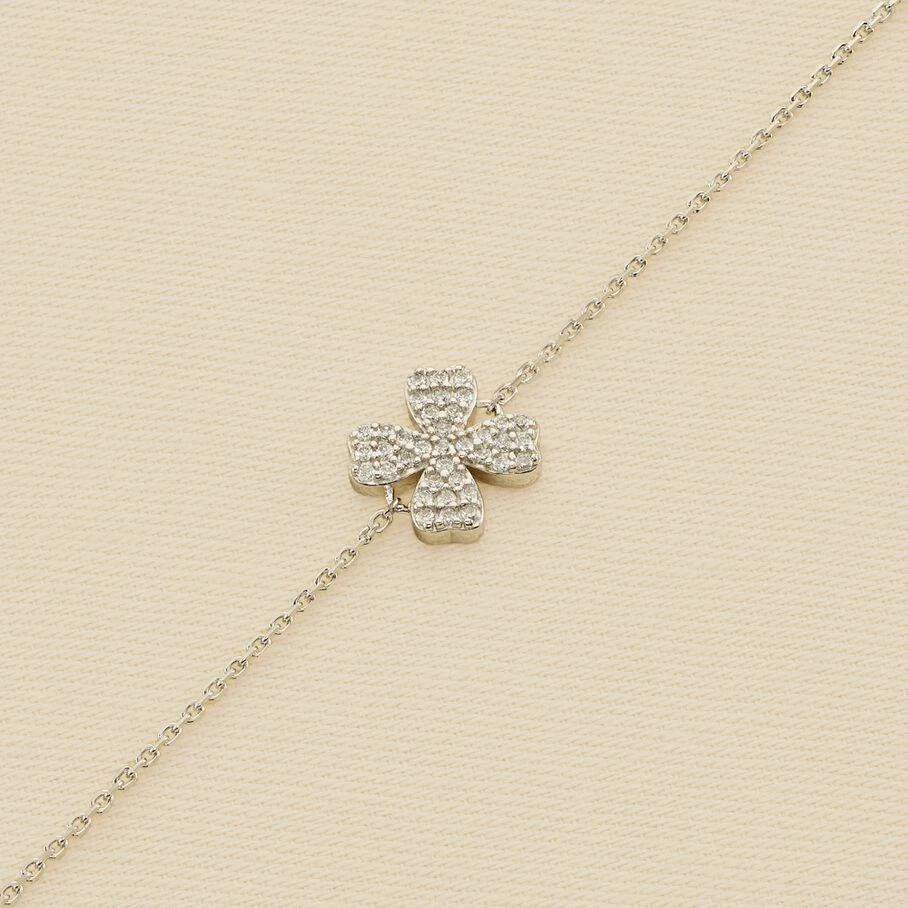 Bracelet souple en argent véritable orné d’un trèfle à quatre feuilles pavé d’oxydes de zirconium