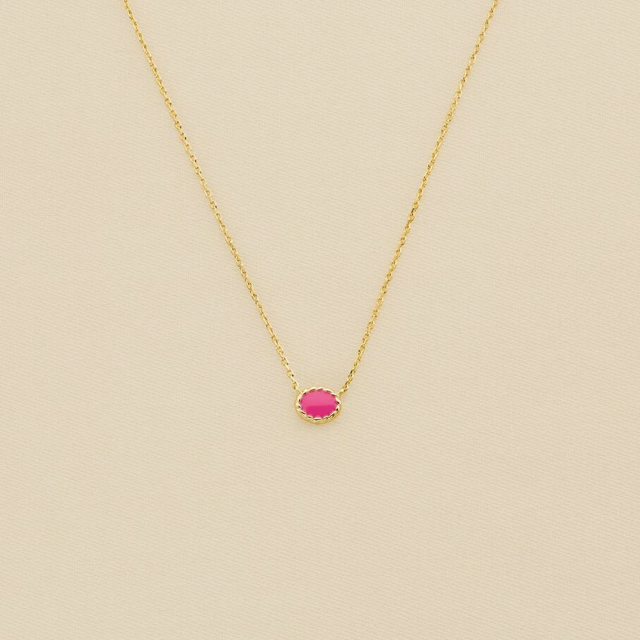 Collier court, en argent véritable 925/1000 et doré 750/1000, orné d’un pendentif monté d’une pierre fine d’un côté et émaillé de l’aute côté. La torsade, véritable signature de la marque, est apportée en touche notamment sur la bordure du pendentif! Un collier au double porté pour accorder à son humeur et à ses tenues!