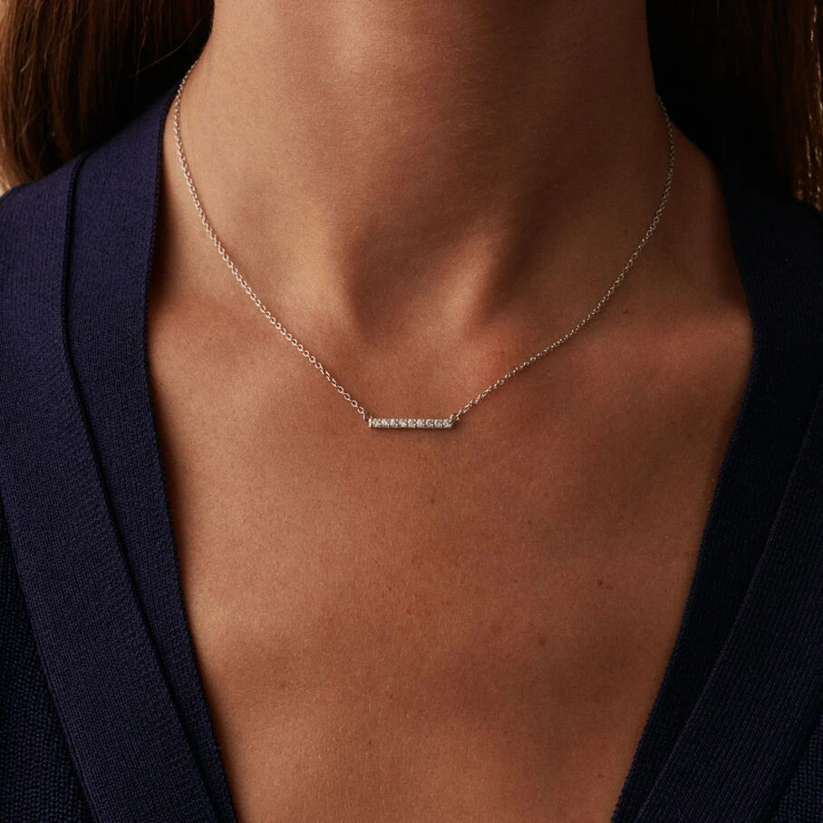 Collier court en argent véritable orné d’une petite barre rigide pavée d’oxydes de zirconium