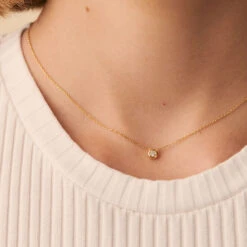 Collier court en argent véritable doré 750/1000, orné d’une petite barre rigide pavée d’oxydes de zirconium
