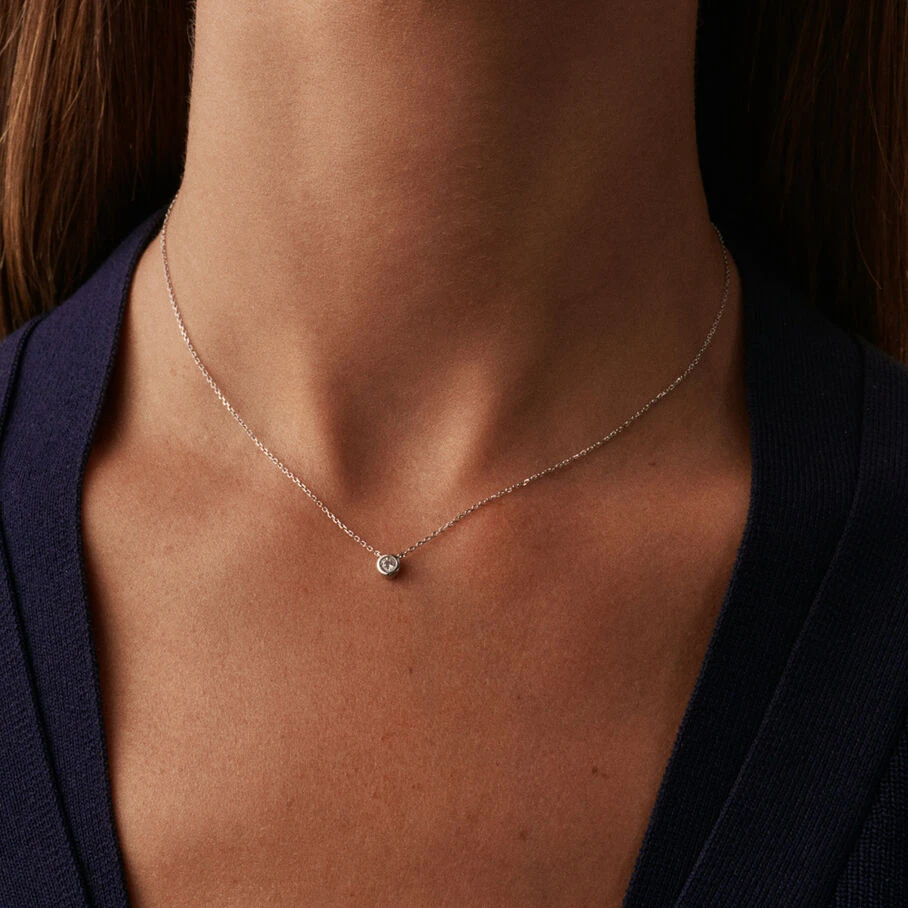 Collier court en argent véritable orné d’un oxyde de zirconium serti clos