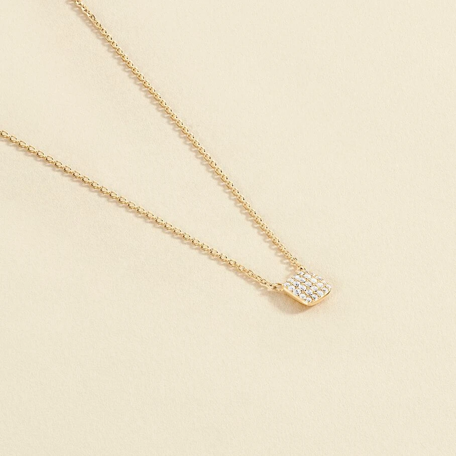 Collier court, en argent véritable doré 750/1000, avec un pendentif en forme de coussin serti d’oxydes de zirconium
