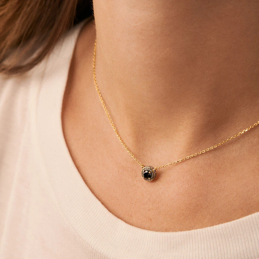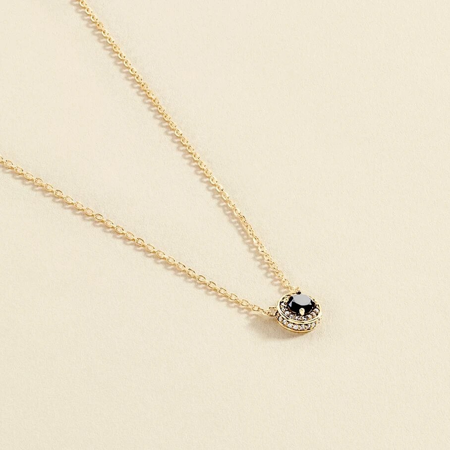 Collier court sur chaine, en argent véritable doré 750/1000, avec un mini oxyde rond autour duquel sont micro sertis des oxydes de zirconium