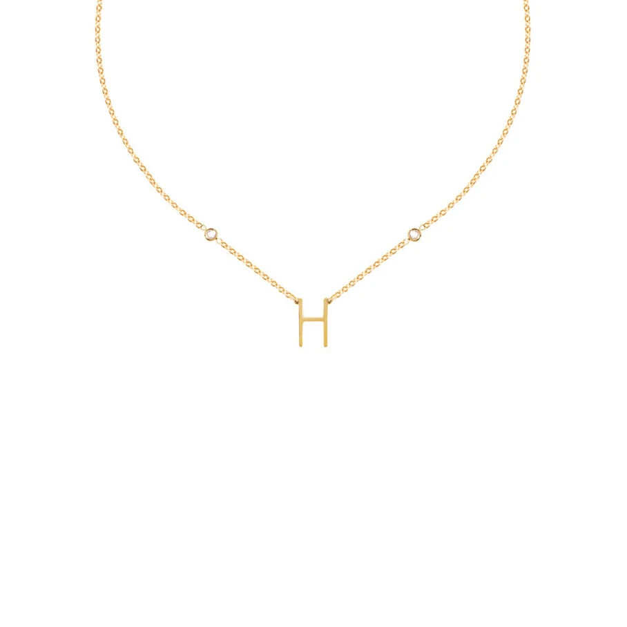 Collier fin composé de la lettre H et de deux oxydes de zirconium. Longueur: 42cm