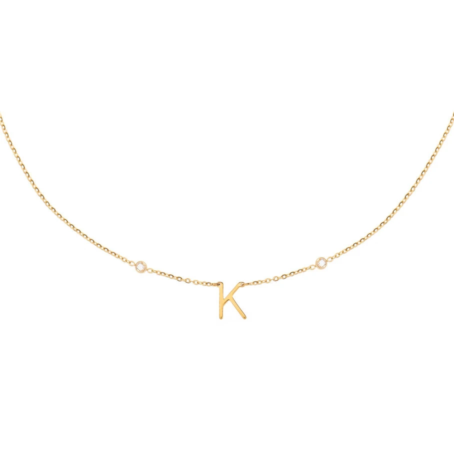 Collier fin composé de la lettre K et de deux oxydes de zirconium. Longueur: 42cm