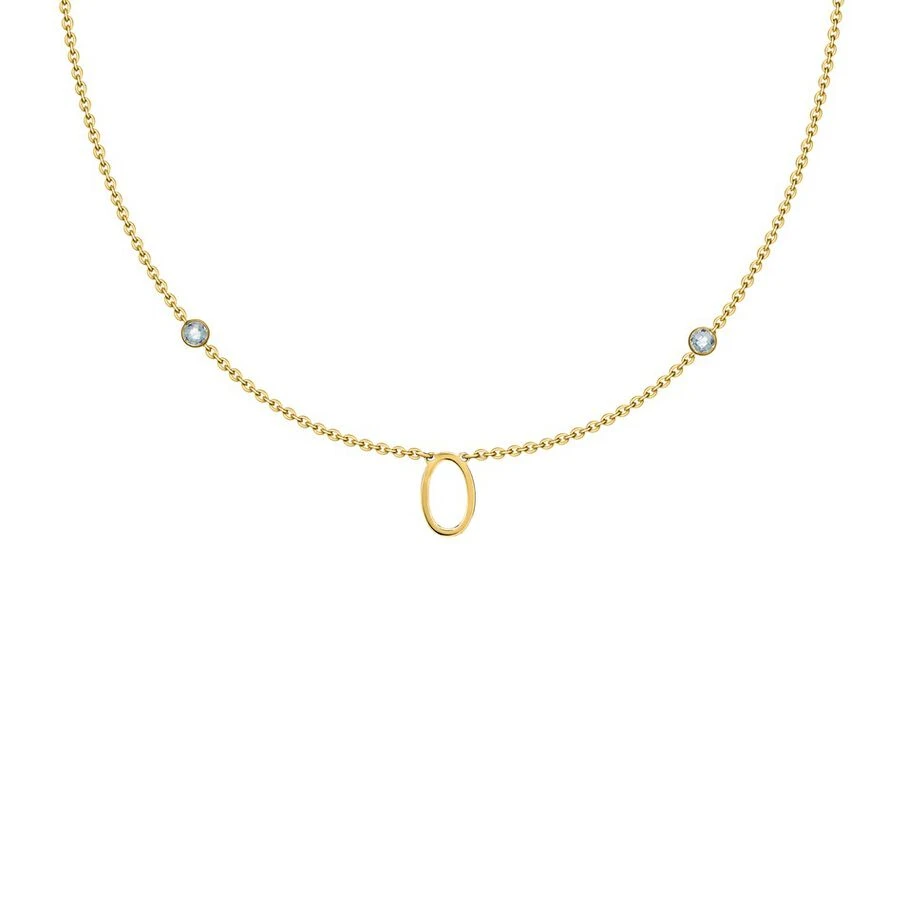 Collier fin composé de la lettre O et de deux oxydes de zirconium. Longueur: 42cm