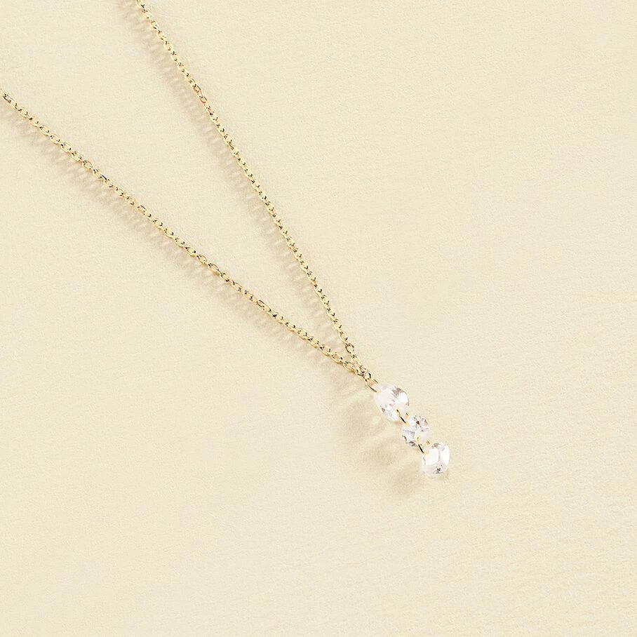 Collier court, en argent véritable doré à’ l’or fin, avec un pendentif fait d’une trilogie d’oxydes de zirconium percés en forme de poire, rond et coussin