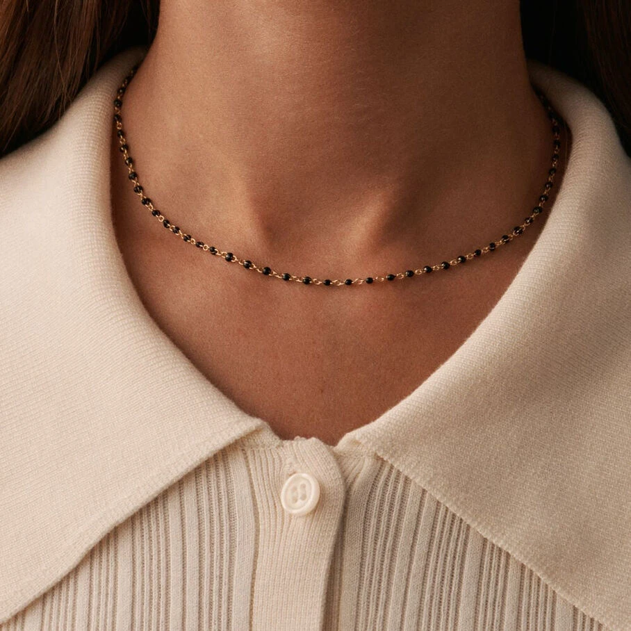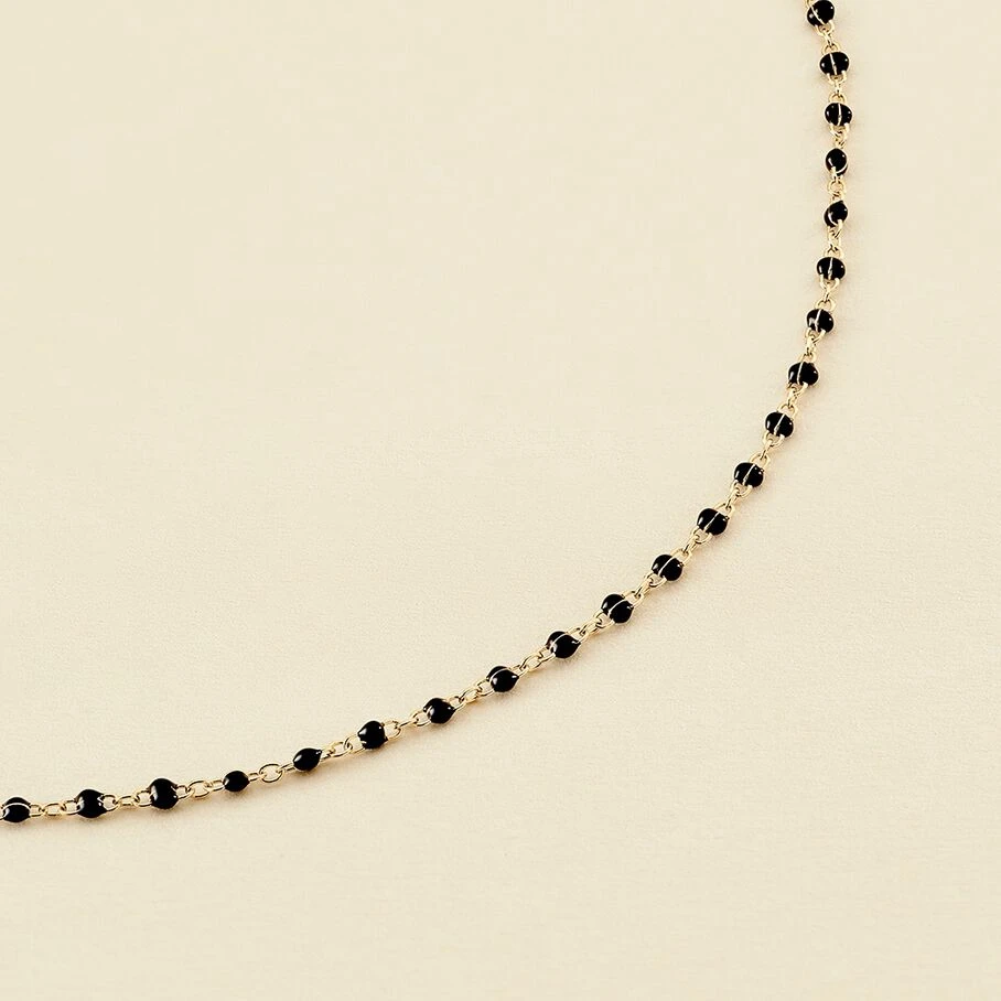 Collier court, en laiton doré 750/1000, perles d’émail sur toute la longueur