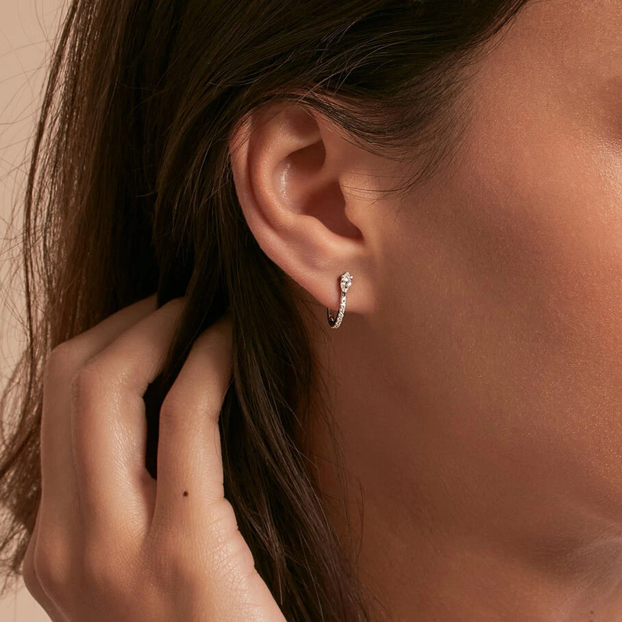Boucles d’oreilles mini créoles en argent véritable en forme de serpent pavée d’oxydes de zirconium