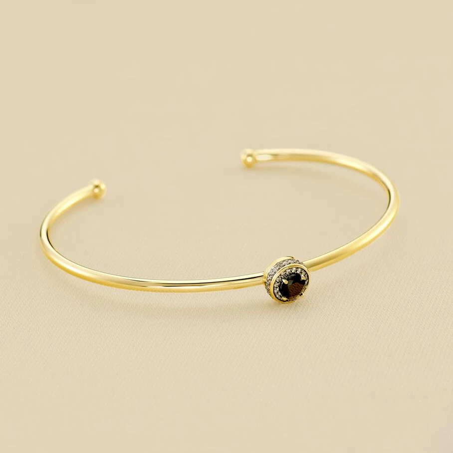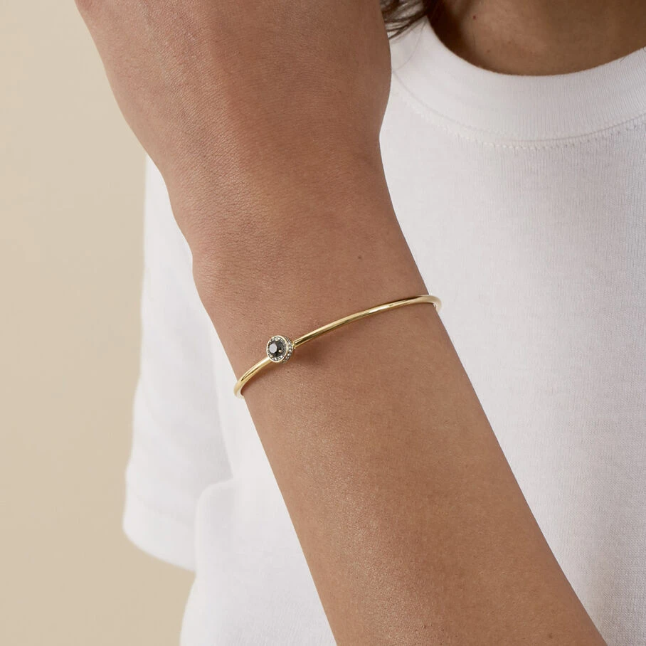 Jonc, en argent véritable doré 750/1000, avec un mini oxyde rond autour duquel sont micro sertis des oxydes de zirconium