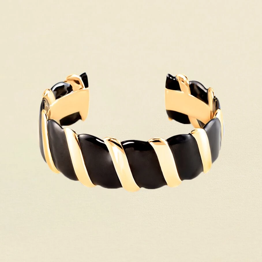 Manchette fine ouverte, en laiton doré, effet torsadé en émail