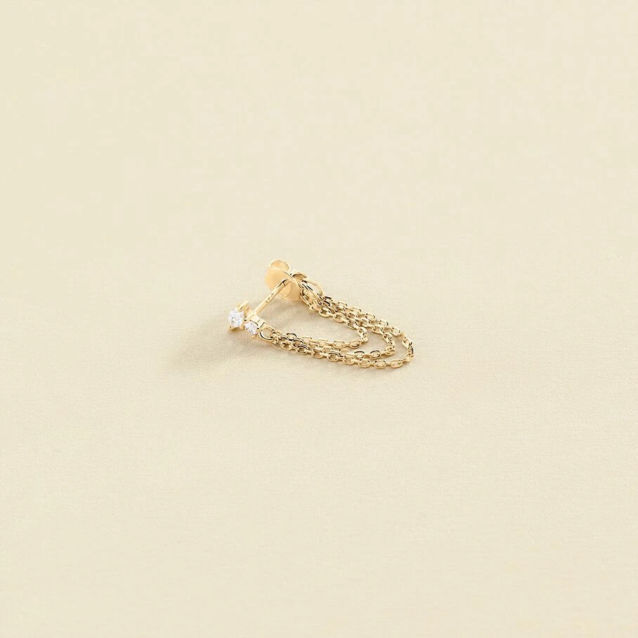 Créole souple, en argent doré 750/1000, oxydes de zirconium et triple chaines. A l’unité