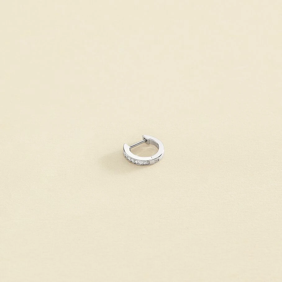 Mini créole en argent véritable de 11 mm de diamètre pavée d’oxydes de zirconium. A l’unité, pour mieux les mixer et les accumuler.