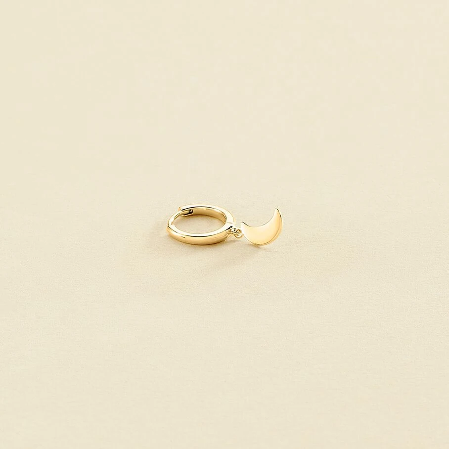 Mini créole en argent doré 750/1000 ornée d’une lune en pampille. A l’unité, pour mieux les mixer et les accumuler.