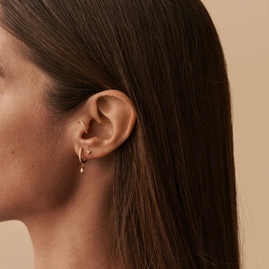 Mini créole en argent véritable doré 750/1000 pavée d’oxydes de zirconium et ornée d’une étoile pavée en pampille. A l’unité, pour mieux les mixer et les accumuler.