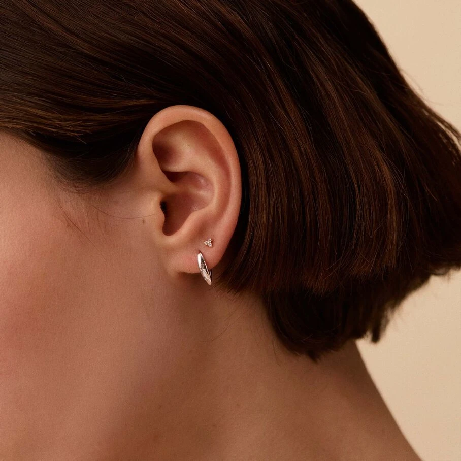 Boucle d’oreille créole à l’unité, en argent 925/1000, représentant une goutte inversée.