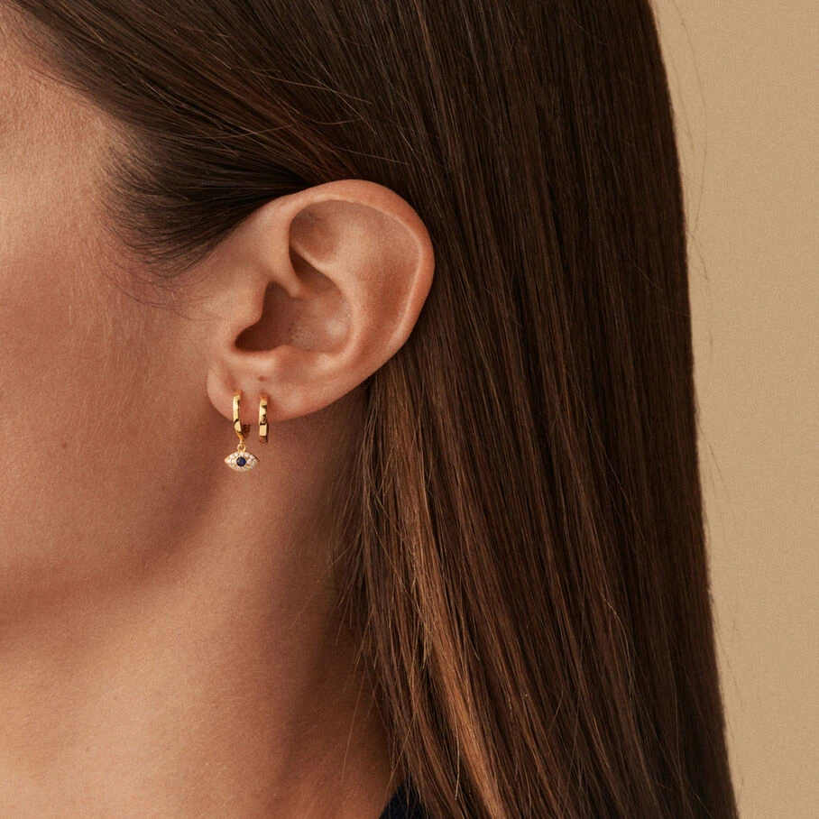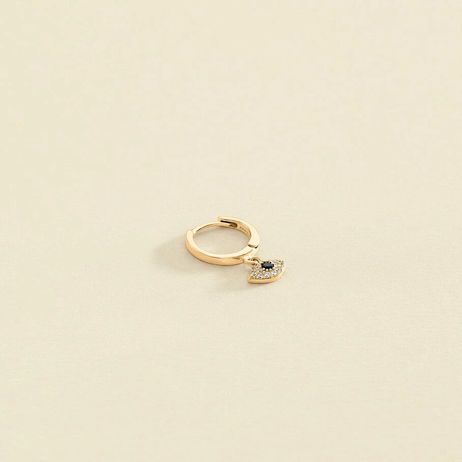 Mini créole, oeil turc pavé d’oxydes de zirconium, en argent doré 750/1000. A l’unité pour miuex les mixer et les accumuler.