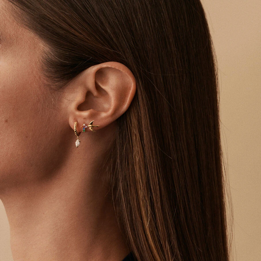 Boucle d’oreille puce, petit oiseau, en argenté doré 750/1000. A l’unité pour mieux les mixer et les accumuler
