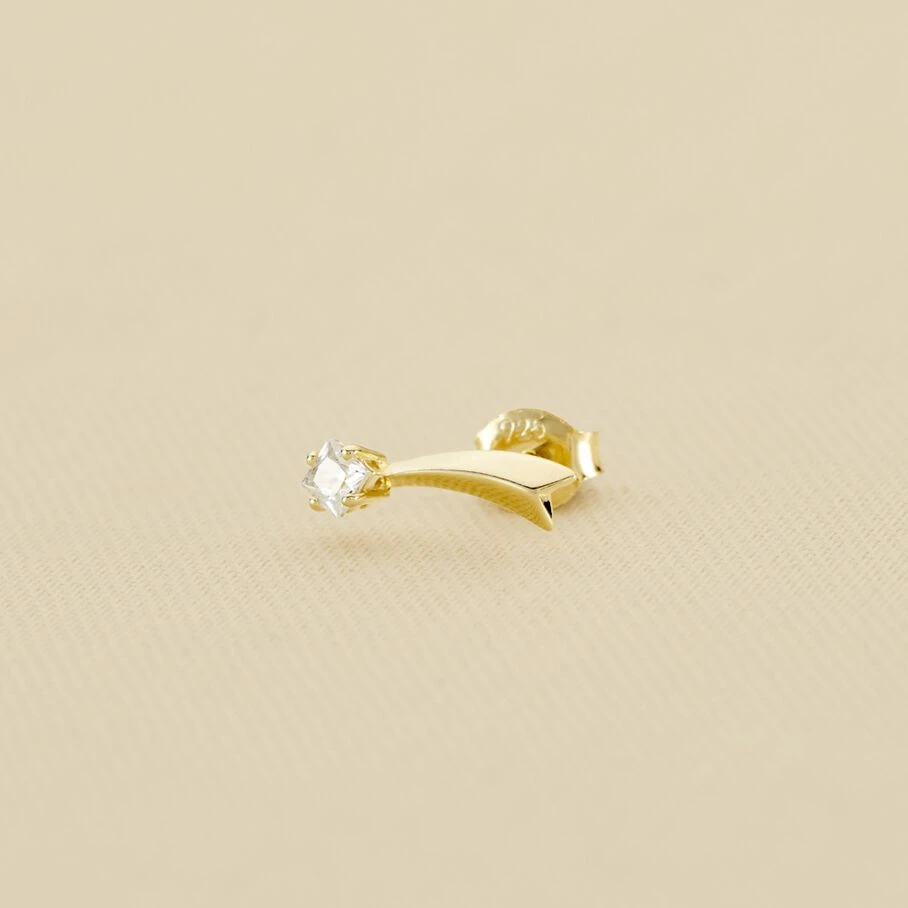 Boucle d’oreille, en argent doré 750/1000, étoile filante avec un oxyde de zirconium. A l’unité pour mieux les mixer et les accumuler.