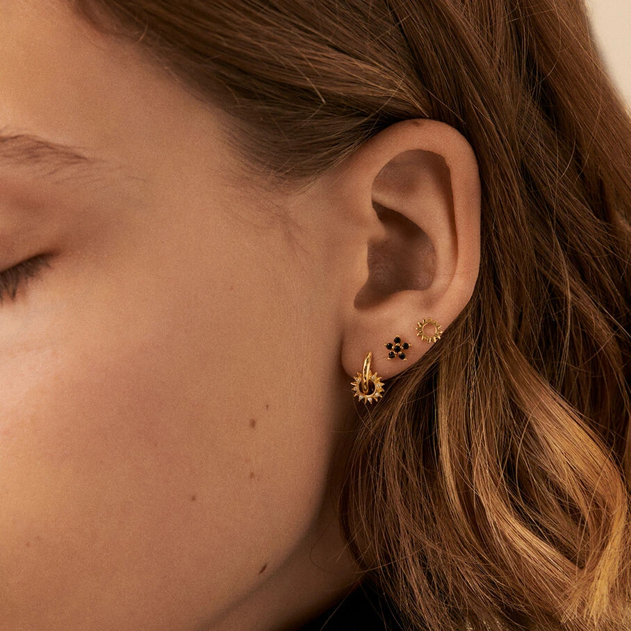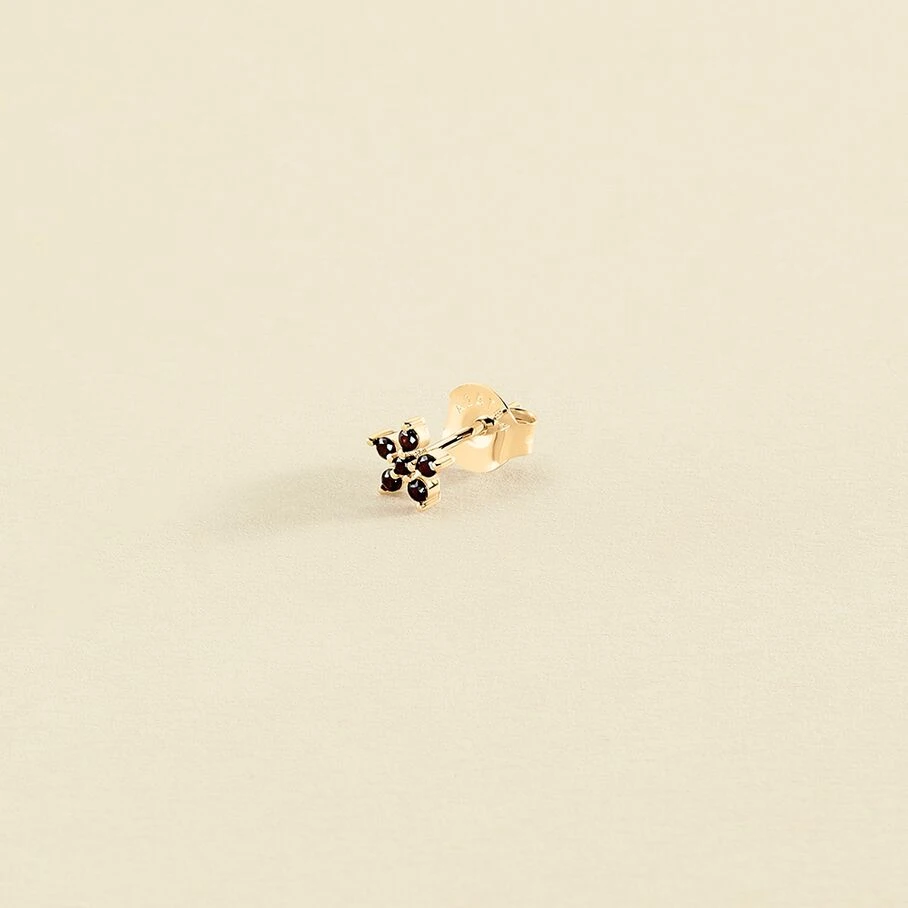 Boucle d’oreille puce en argent véritable doré 750/1000 en forme de fleur pavée d’oxydes de zirconium. A l’unité, pour mieux les mixer et les accumuler.