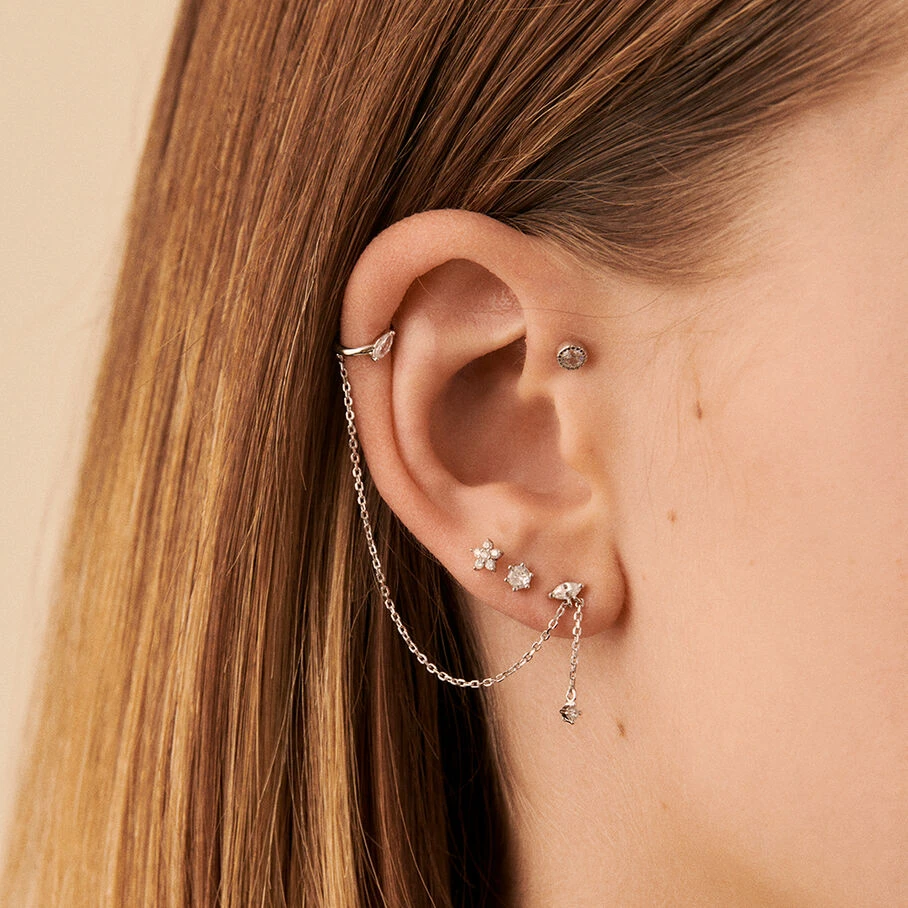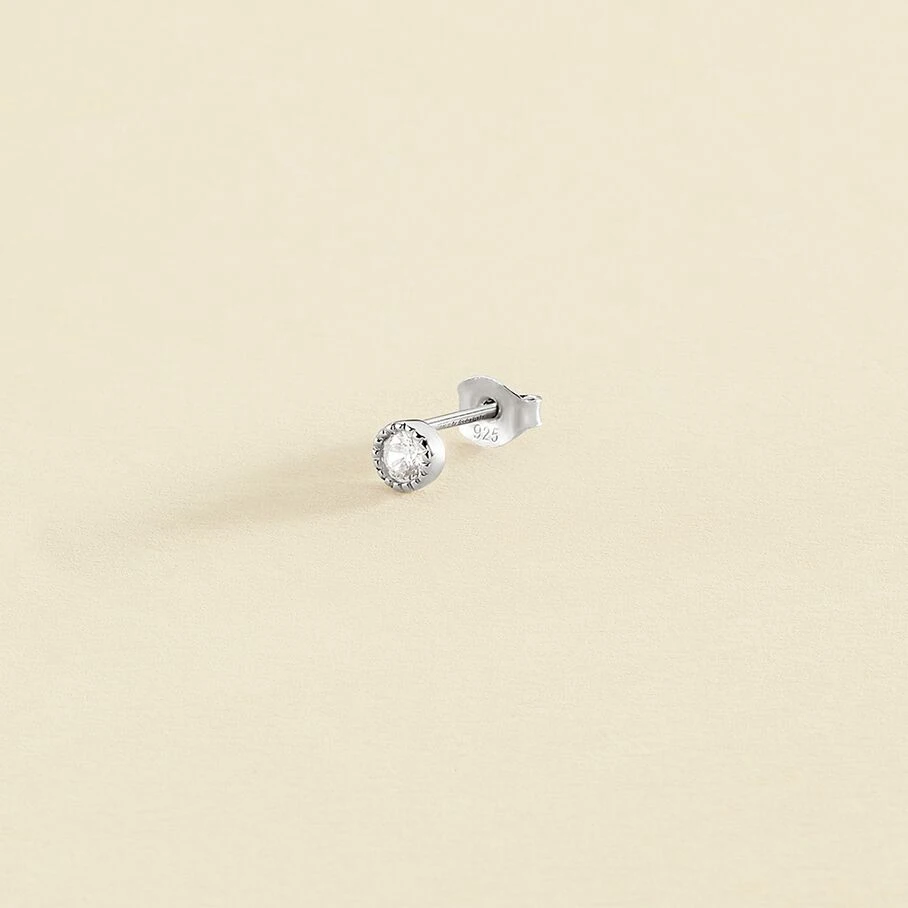 Boucle d’oreille puce en argent véritable orné d’un oxyde de zirconium serti grainetti. A l’unité, pour mieux les mixer et les accumuler.