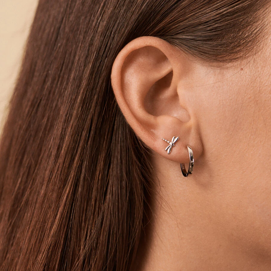 Boucle d’oreille puce en argent véritable en forme de libellule. A l’unité, pour mieux les mixer et les accumuler.