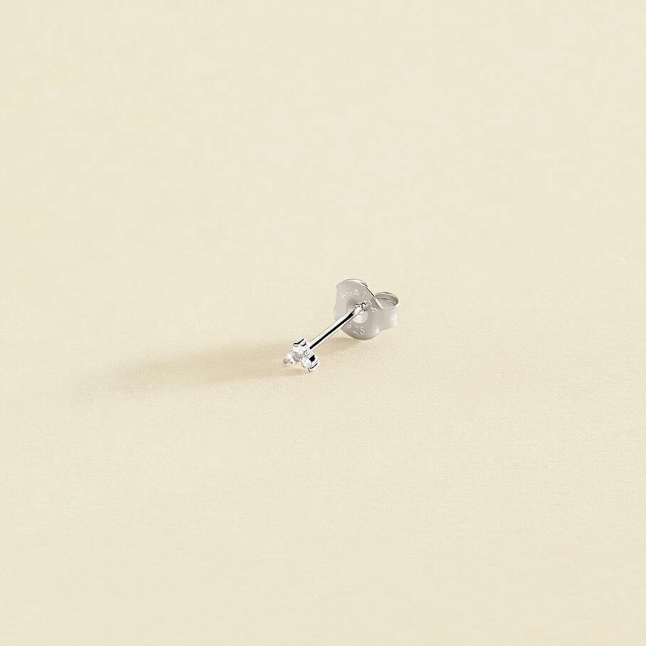 Boucle d’oreille puce en argent véritable ornée de trois oxydes de zirconium en triangle. A l’unité, pour mieux les mixer et les accumuler.