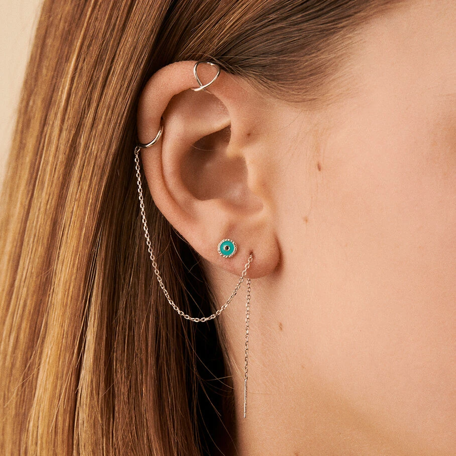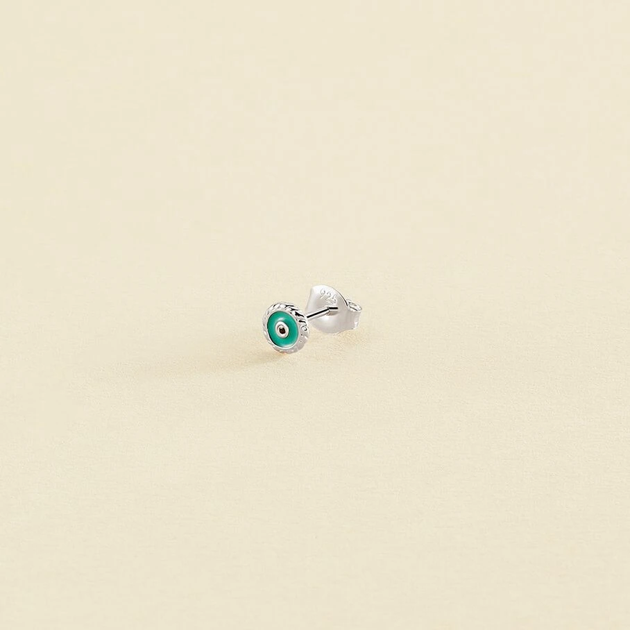 Boucle d’oreille puce à l’unité, en argent véritable 925/1000, en forme d’œil turc. L’iris émaillé et le contour de l’œil serti d’oxydes de zirconium apportent un vrai raffinement et éclat au produit!