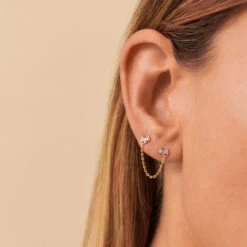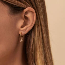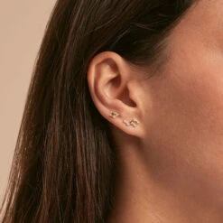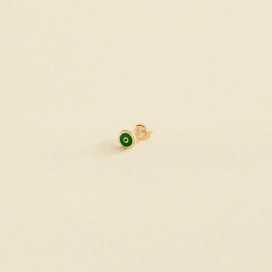 Boucle d’oreille puce à l’unité, en argent 925/1000 doré 750/1000, en forme d’œil turc. L’iris émaillé et le contour de l’œil serti d’oxydes de zirconium apportent un vrai raffinement et éclat au produit!