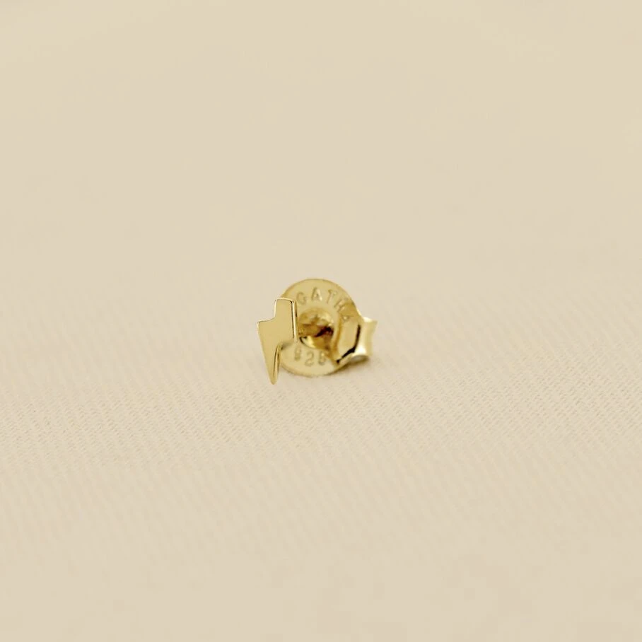 Boucle d’oreille puce, petit éclair, en argent véritable doré 750/1000. Vendu à l’unite pour mieux les mixer.