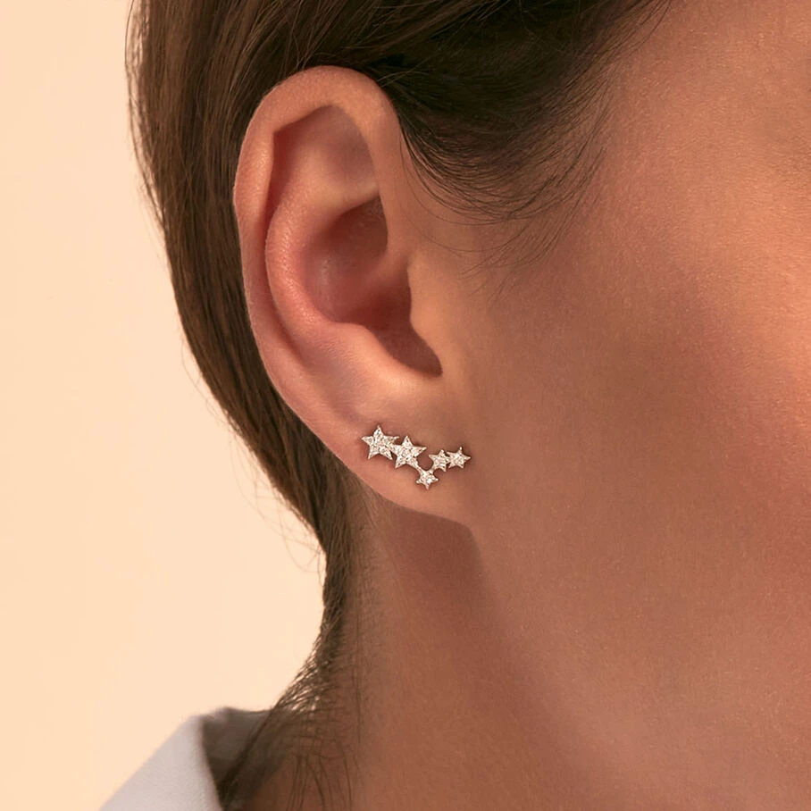 Boucle d’oreille vendue à l’unité en argent véritable, 5 étoiles pavées d’oxydes de zirconium