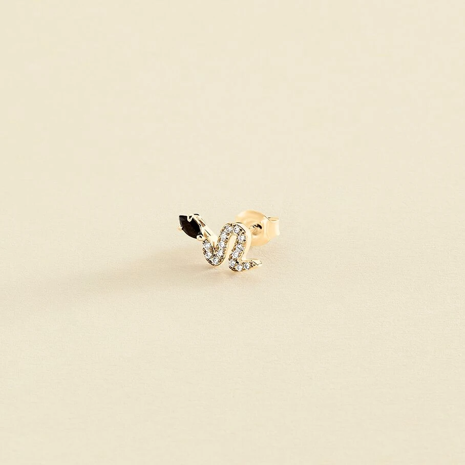 Boucle d’oreille puce en argent véritable doré à l’or fin en forme de serpent pavé d’oxydes de zirconium. A l’unité, pour mieux les mixer et les accumuler.