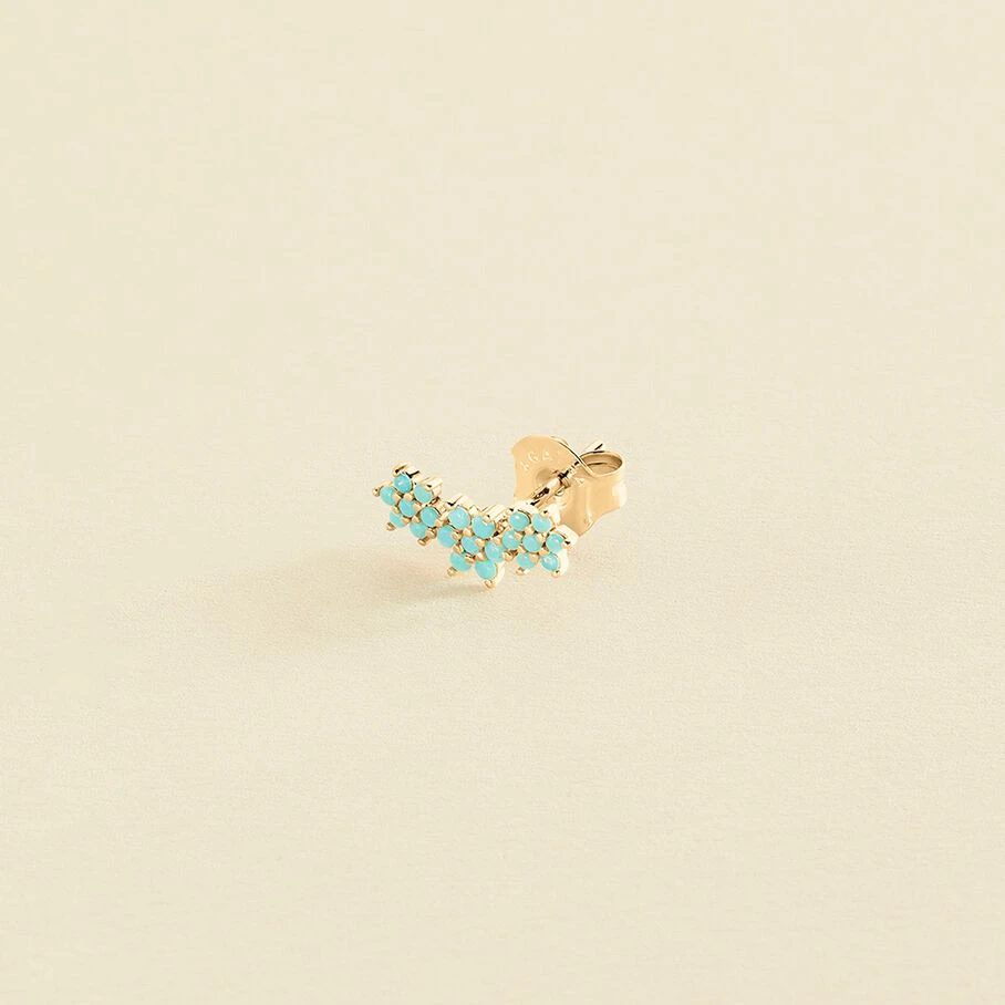 Boucle d’oreille puce argent doré 750/1000 en forme de trois fleurs pavées d’oxydes de zirconium. A l’unité, pour mieux les mixer et les accumuler.